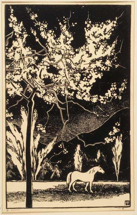 Drie paardjes en kamperfoelie, 24,5 x 21 cm, 1940