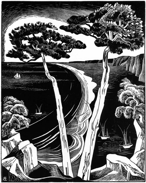 Pijnbomen, Bretonse baai bij eb, 38 x 31,5 cm, 1927